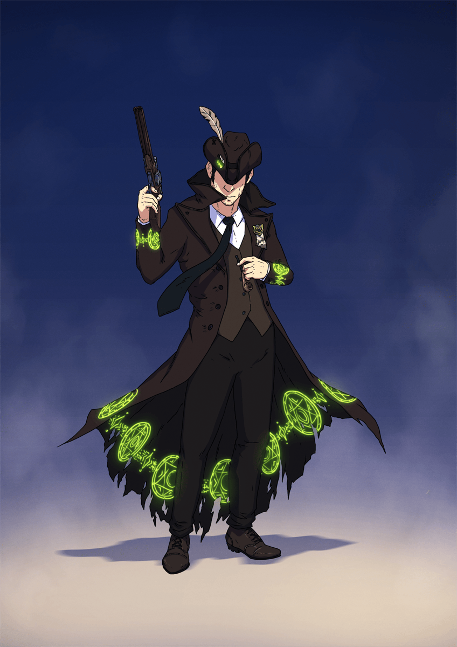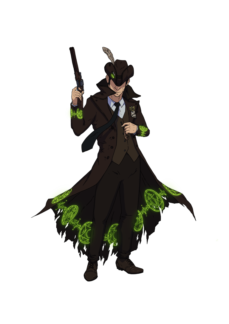 Wielding his trusty Revolving Scattergun, he fights against those who would bring harm to innocent bystanders while trying to understand the occult and magics beyond most normal people's comprehension.